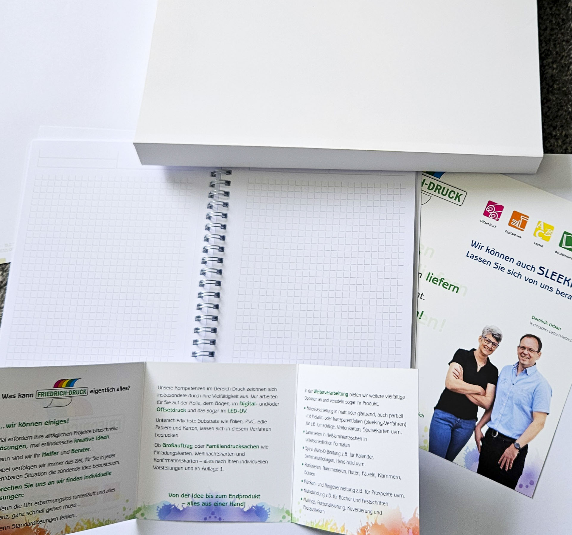 je nach Anforderung und Anwendungszweck bringen wir Ihre Drucksachen in Form.