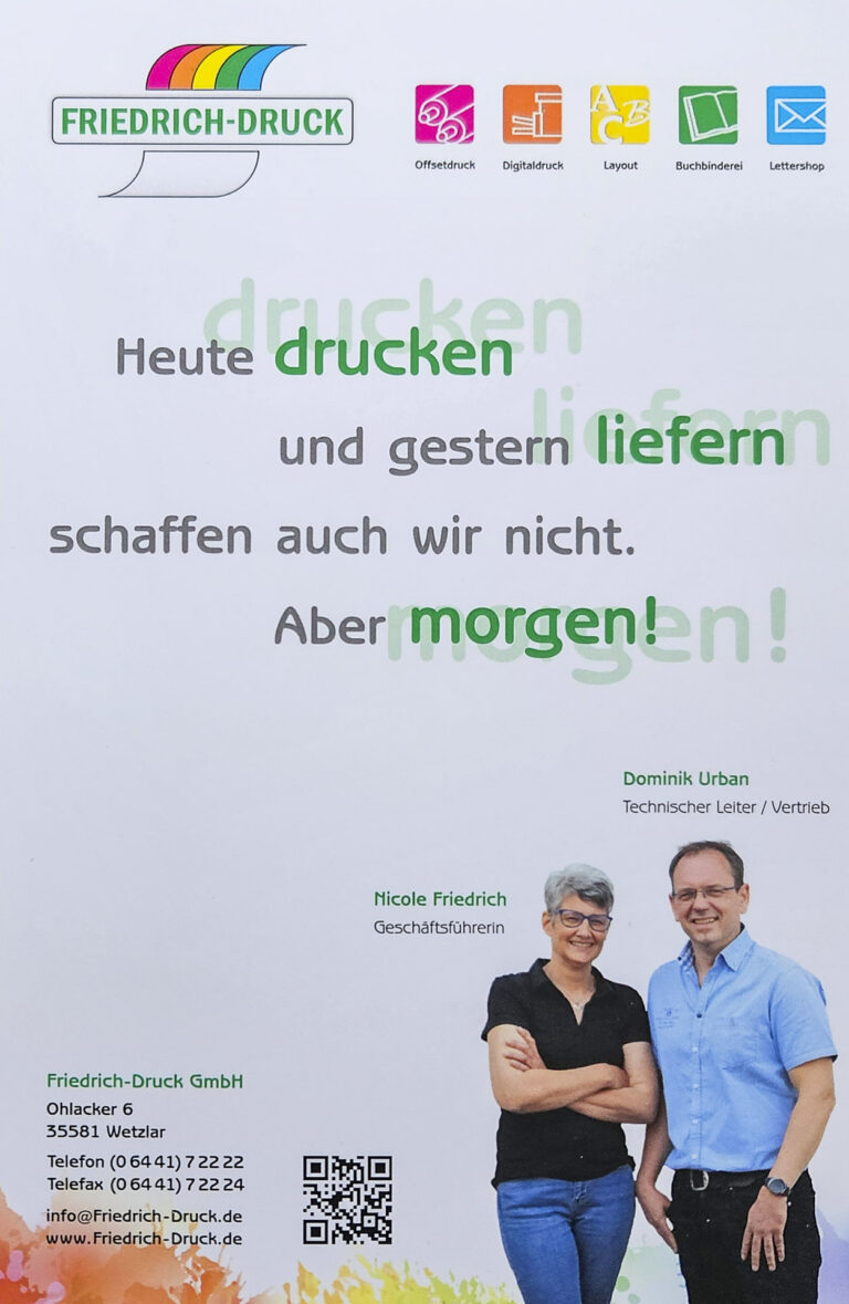 Unserer geschultes und ideenreiches Personal berät Sie kompetent, unterbreitet Ihnen kreative Vorschläge und kümmert sich um die komplette Abwicklung – vom Druck bis zur Lieferung.